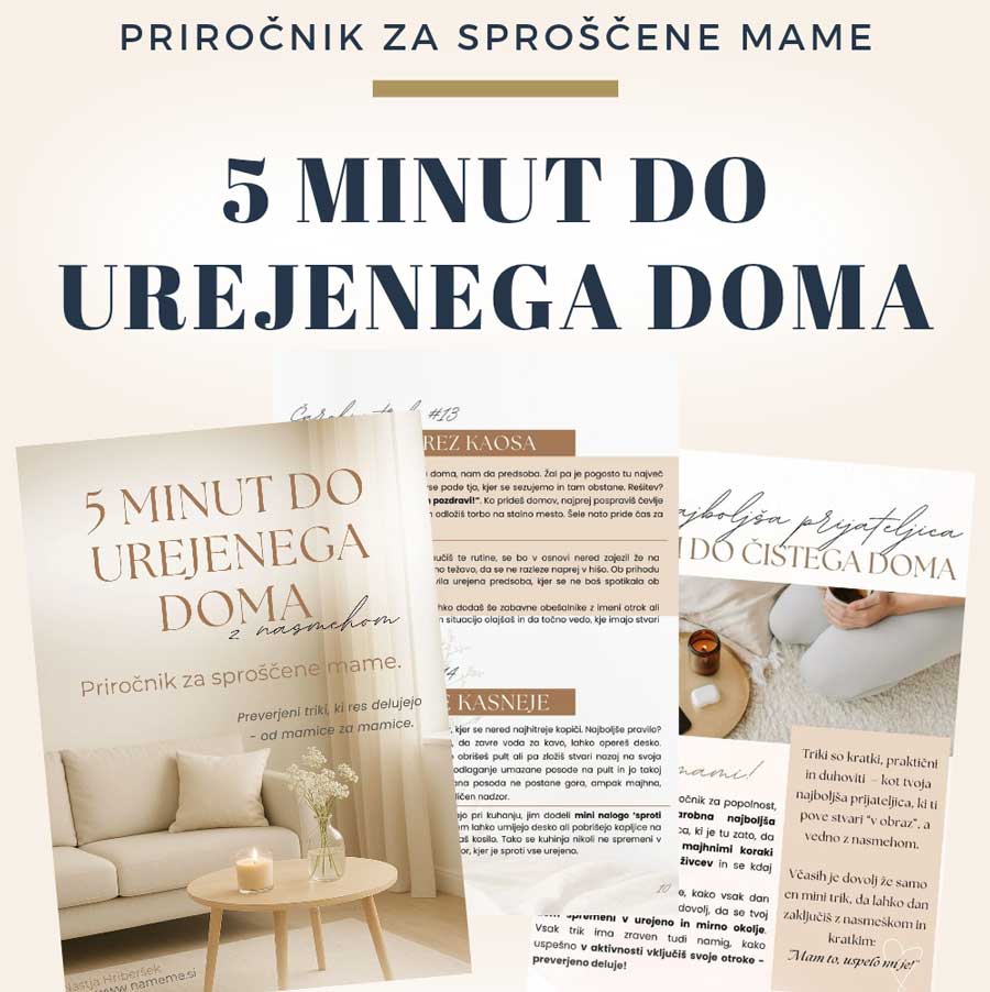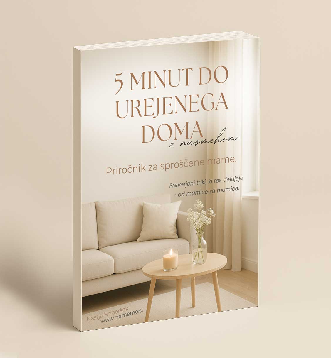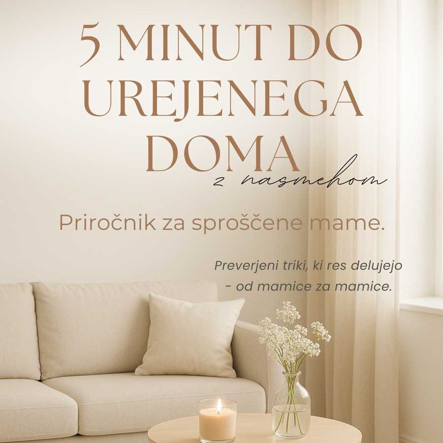 “5 minut do urejenega doma (PDF)” je praktičen vodič, ki ti pokaže, kako lahko z majhnimi koraki dosežeš velike spremembe. Ni ti treba več preživljati celih dni ob pospravljanju – dovolj je le nekaj minut na dan, da se tvoje stanovanje spremeni v prijeten in urejen prostor.
